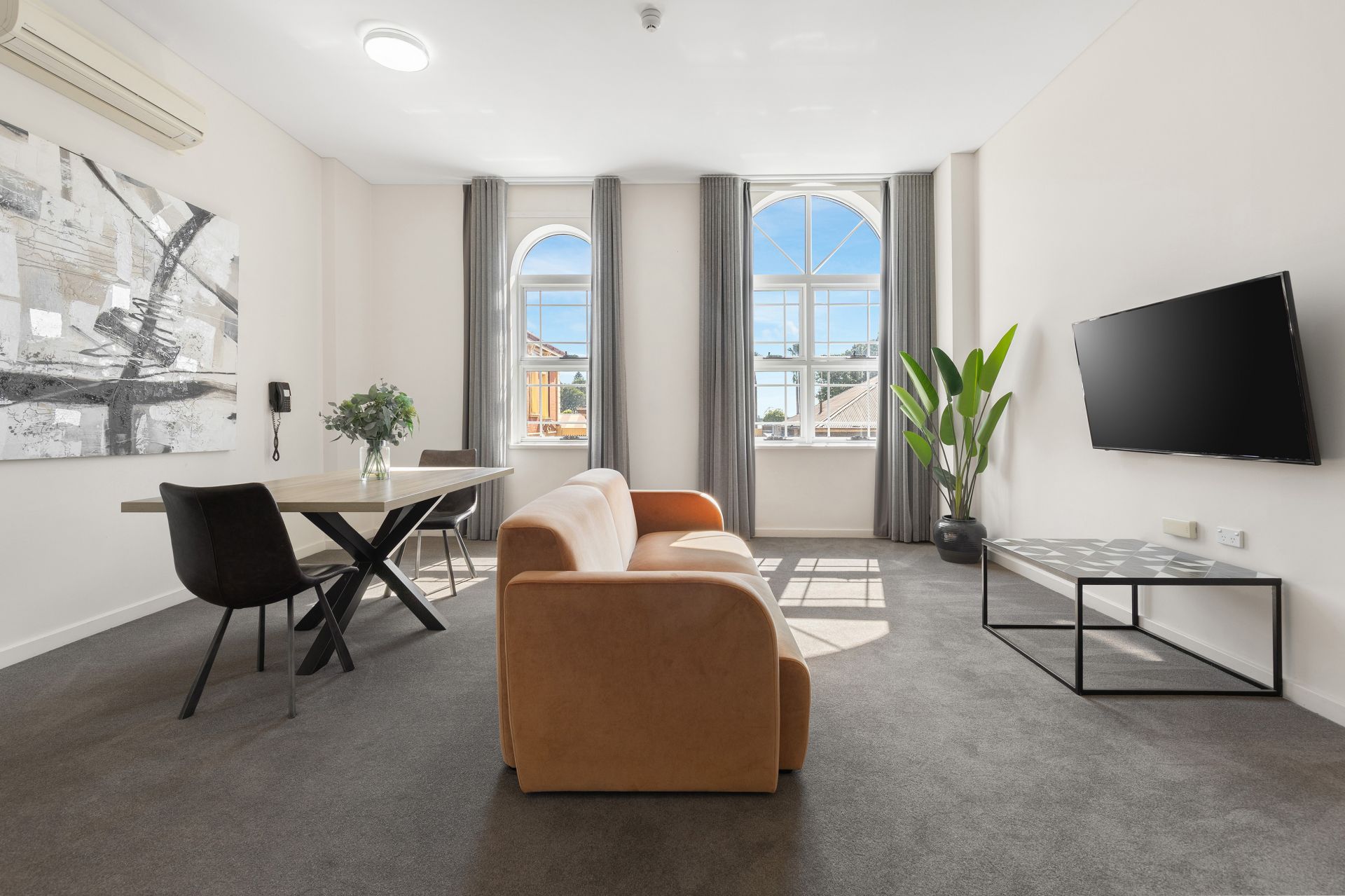 A genuinely regretful sale, this one-bedroom apartment in the heritage-listed Terminus Apartment Hotel delivers a smart, set-and-forget investment right in the heart of Newcastle’s vibrant east end. Positioned on the first floor, it’s framed by beautiful arched windows that draw in soft northerly light and capture a charming outlook through the old station to the harbour beyond.