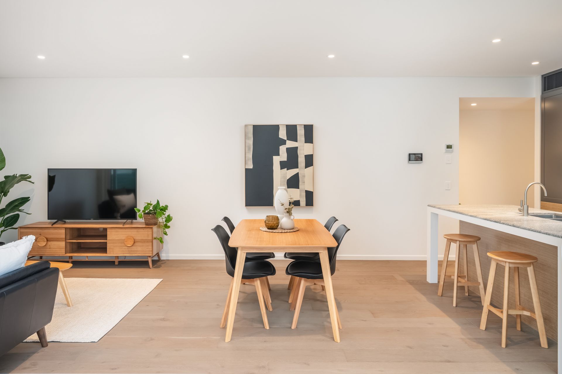 Positioned on level two of the harbourside LUME complex, the apartment impresses immediately as it welcomes you into its inviting, light-filled layout, where modern elegance meets effortless luxe. Framed by a wall of windows, open-plan living creates an enticing retreat, connecting seamlessly with the lovely balcony overlooking Honeysuckle Drive. Boasting premium appliances and sleek stone and timber finishes, the kitchen is a gourmet’s delight, while the complementary bathroom is just as easy on the eye. Generous in size, the bedroom offers excellent storage, while out in the hall, there is a Euro laundry and further storage to be found.