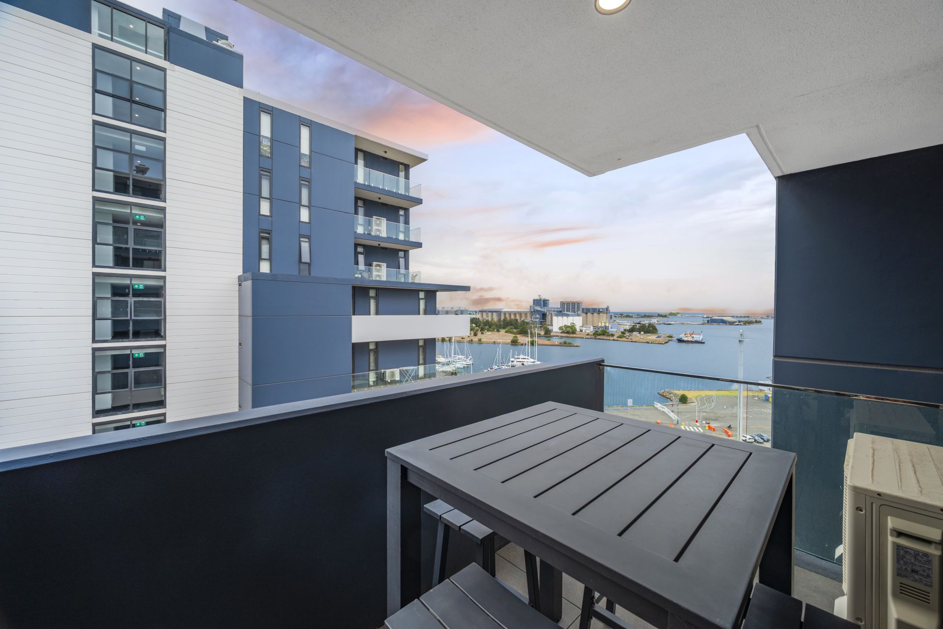 Perched on the 11th floor of Stella’s southern tower, this one-bedroom apartment leans into that northeast aspect, lifting your eyes up the harbour towards Nobbys and the city and out over Newcastle Marina. It feels calm and tucked away, yet you’re right in the middle of the action.