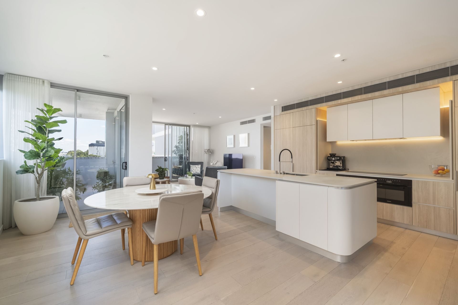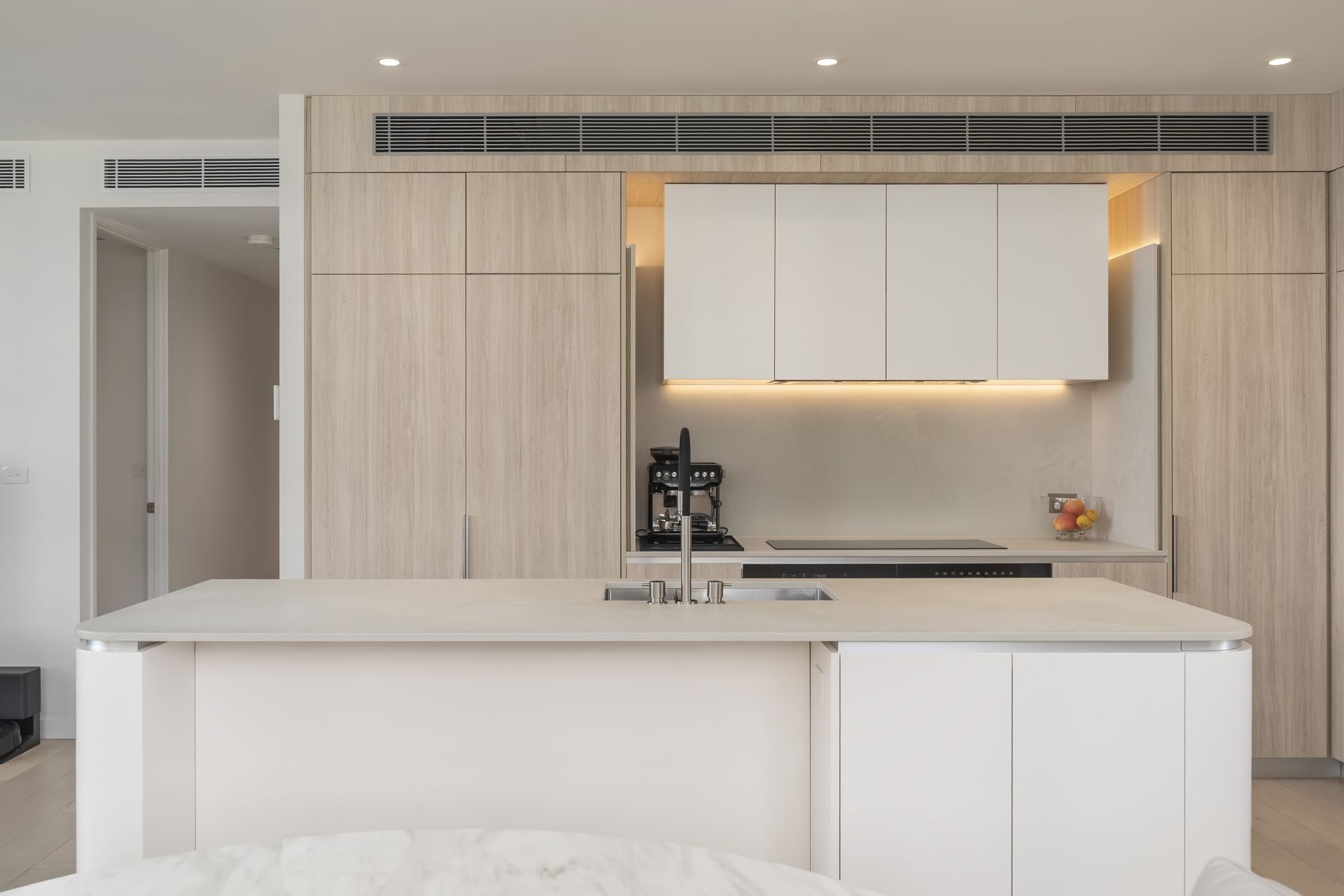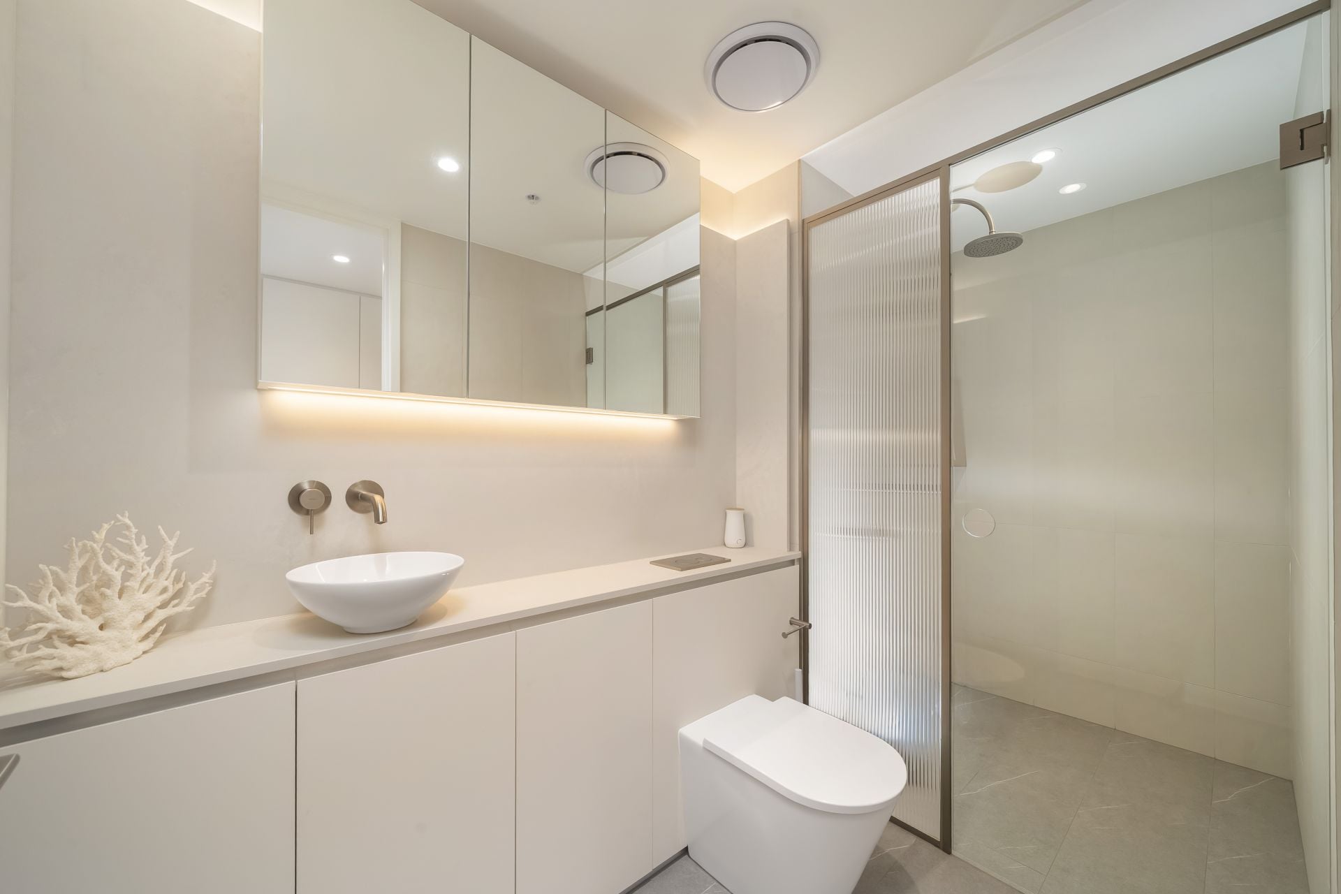 Inside, everything’s been crafted with care. The stone-wrapped island bench sets the tone in a kitchen fitted with Miele appliances, including a fully integrated fridge/freezer and dishwasher. It all opens smoothly into the living and dining area, and those glass sliders pull you onto the wraparound balcony destined to be your go-to spot for a slow breakfast, sunset drinks, or just taking in the water. The master bedroom shares the view so you can wake up to the harbour each morning, while two extra bedrooms sit off the hallway along with a sleek shower bathroom, and Euro laundry. Tandem parking and a storage cage ties the bow.