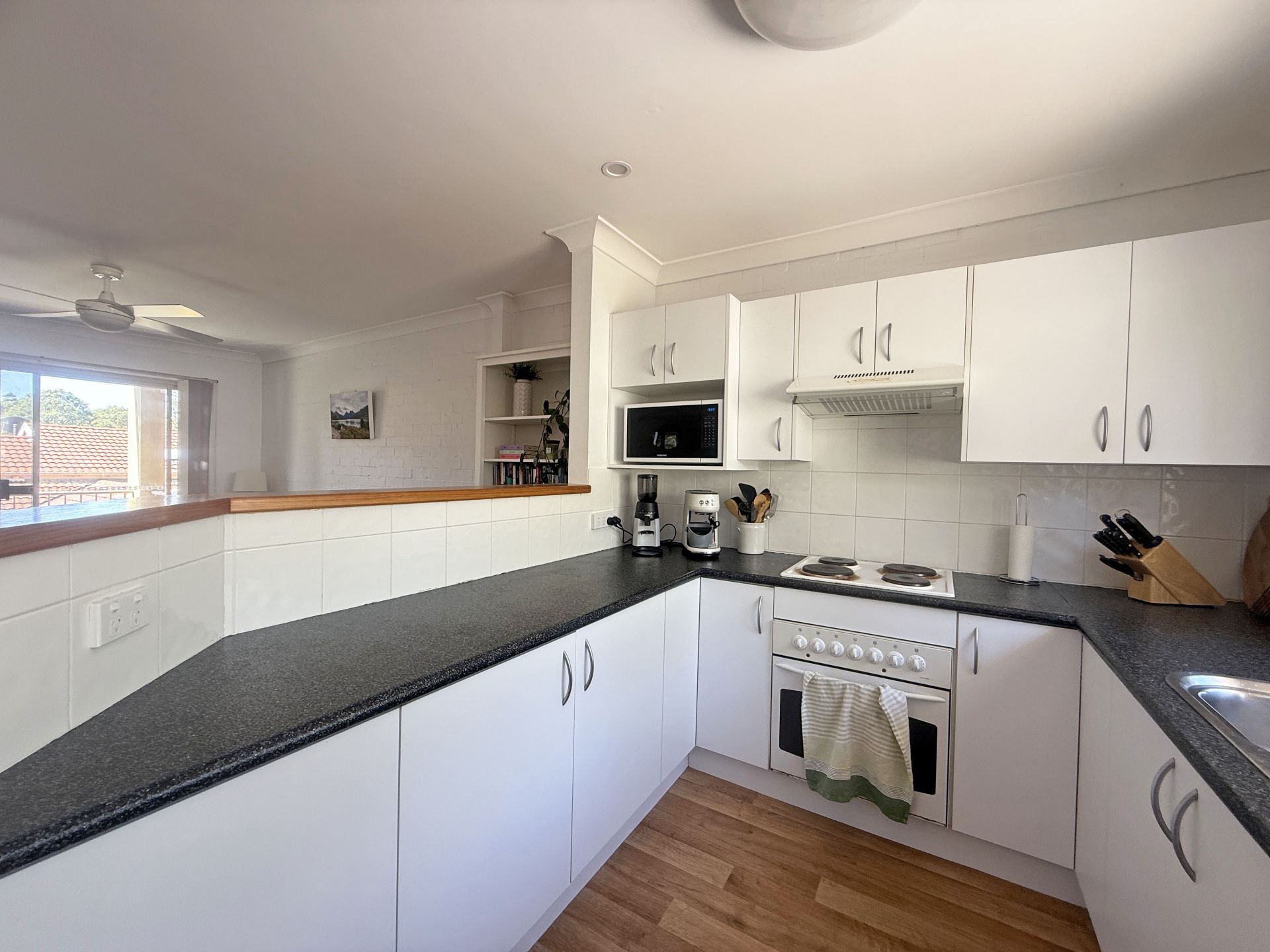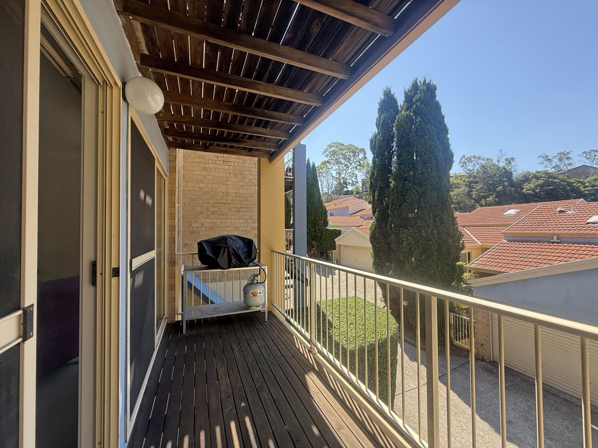 Spread over two levels above the double garage, the practical layout is designed for easy living. The top level offers privacy for all three robed bedrooms and the new main bathroom. Downstairs, open-plan lounge and dining flows effortlessly into the electric-equipped kitchen, while the laundry and second bathroom are discreetly tucked away. Two north-facing balconies capture the winter sun and offer a pleasant leafy outlook, while the rear courtyard is perfect for alfresco entertaining. Outdoor setting in rear courtyard included. Pool in complex.
