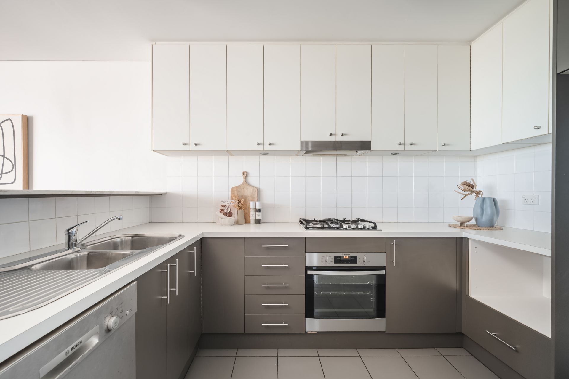 – Kitchen featuring gas cooktop, under bench oven, dishwasher