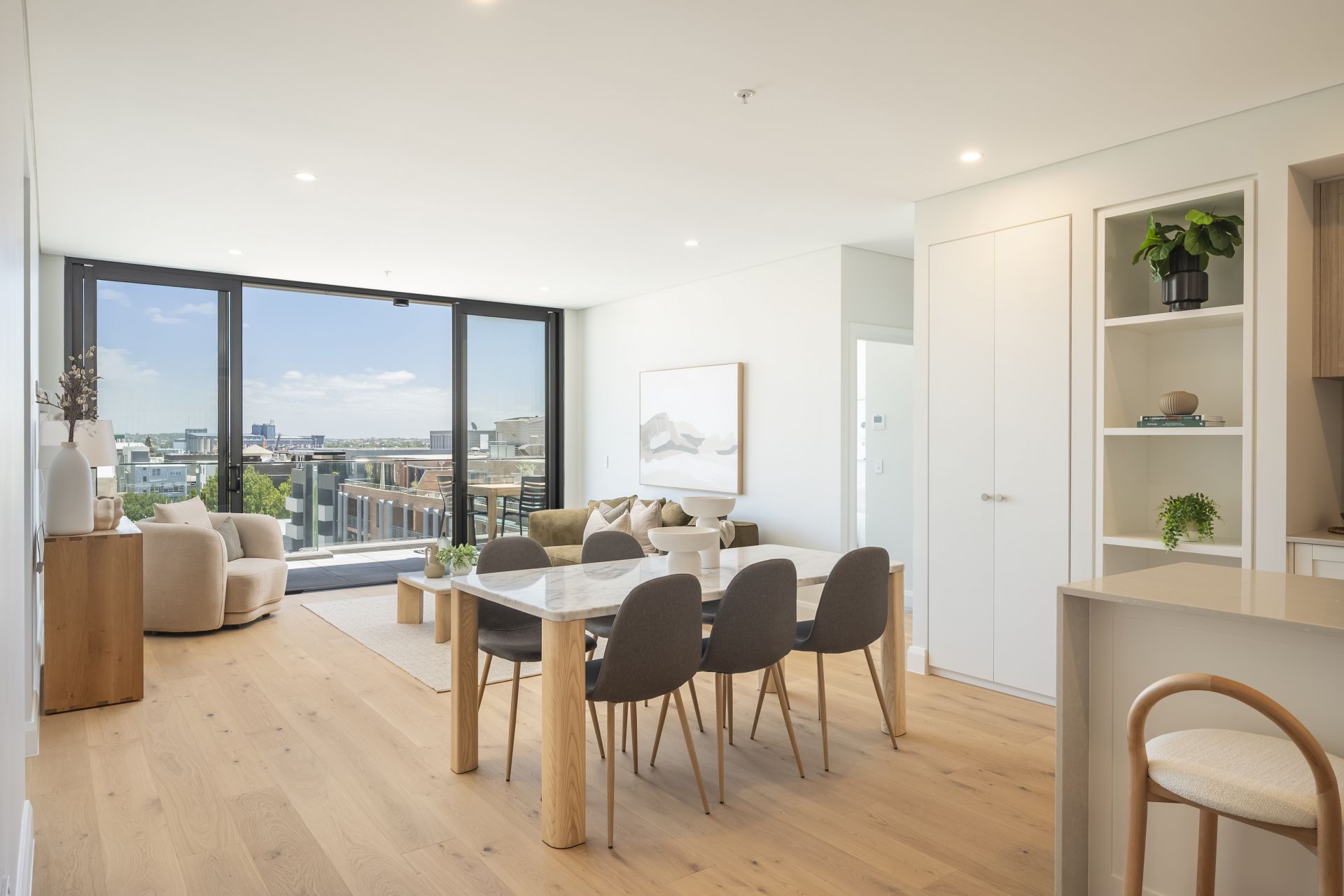 This is contemporary apartment living turned up a notch. Sitting on the penthouse level of the just-completed Chapter complex, this three-bedroom residence makes a statement from the moment you step inside. The open plan layout is impressively wide, with a wall of glass pulling city and harbour views straight into the heart of the home.