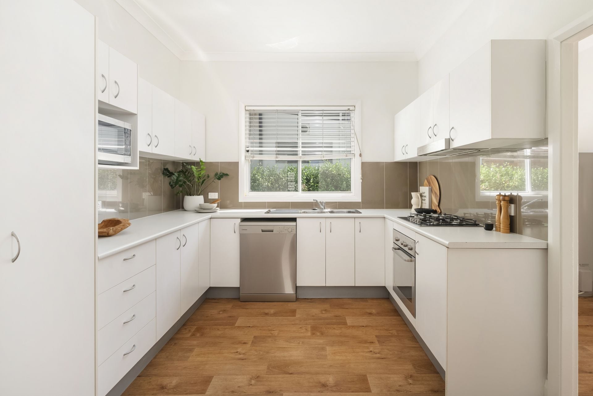 – Modern kitchen with gas cooktop, under bench oven, dishwasher