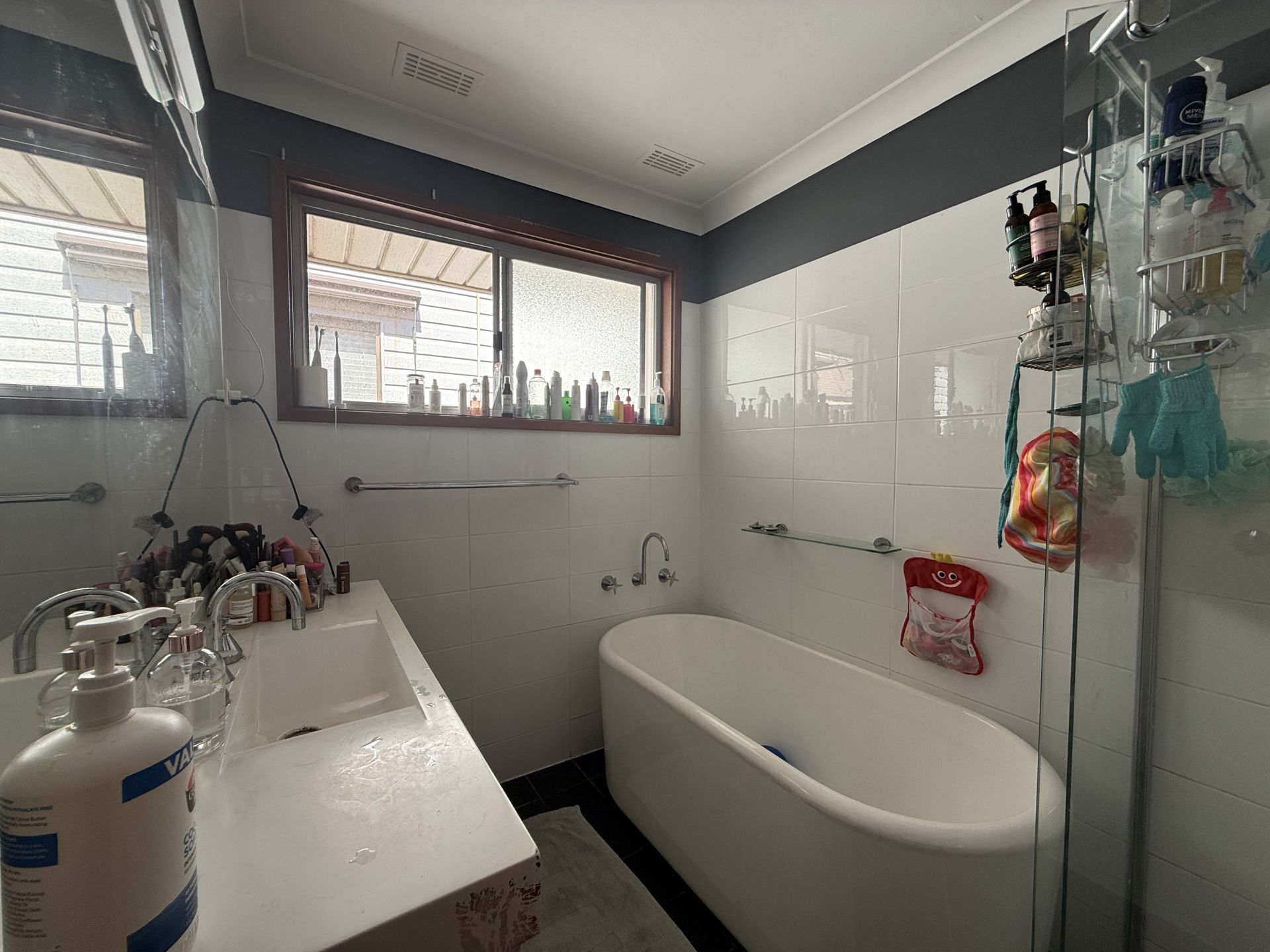 All three bedrooms are generously sized and include built-in wardrobes, while the updated bathroom adds a touch of luxury with a freestanding bath.